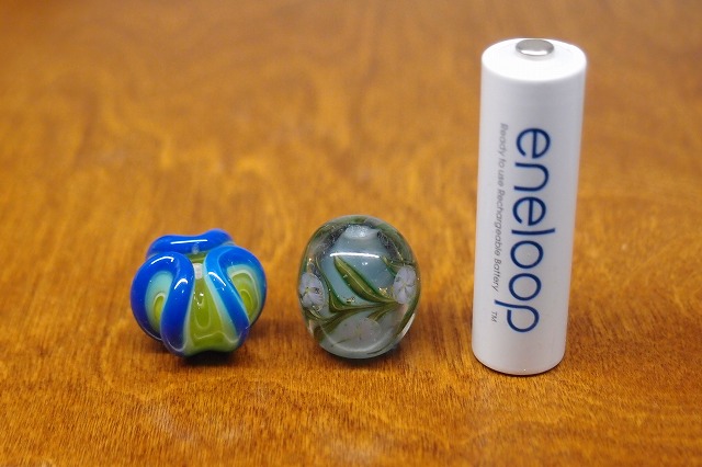 いつもトンボ玉だけを拡大した写真ばかりなので、大きさがピンとこないかもしれませんね。